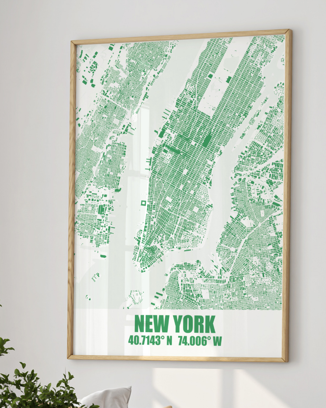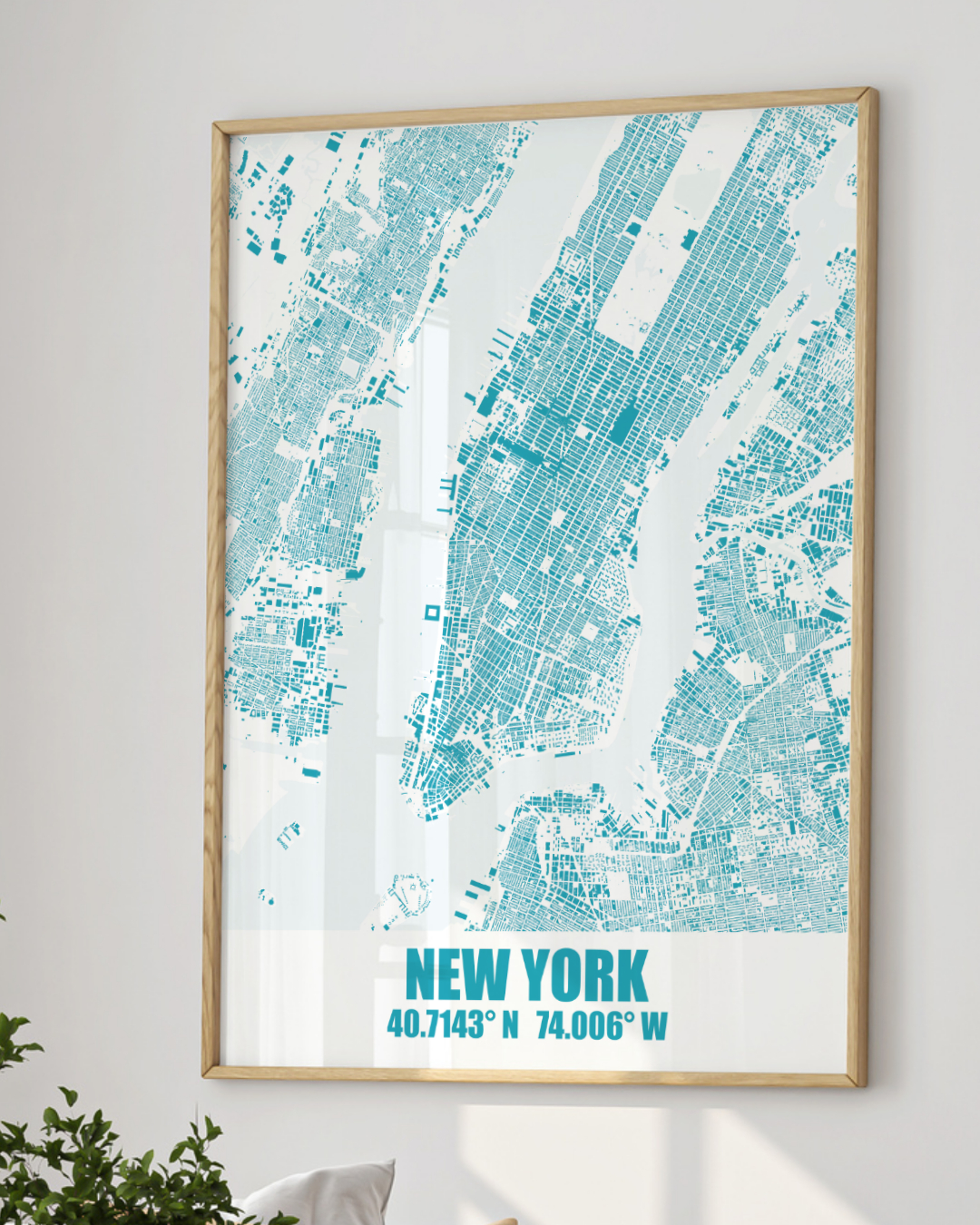 Este diseño contemporáneo descompone el mapa tradicional para reimaginar la ciudad como una estructura modular, resaltando la cuadrícula tan característica de Manhattan y los trazados irregulares de Brooklyn y Queens. Cada bloque, cada línea, sugiere un rincón por descubrir, un recuerdo por revivir o una historia que contar.