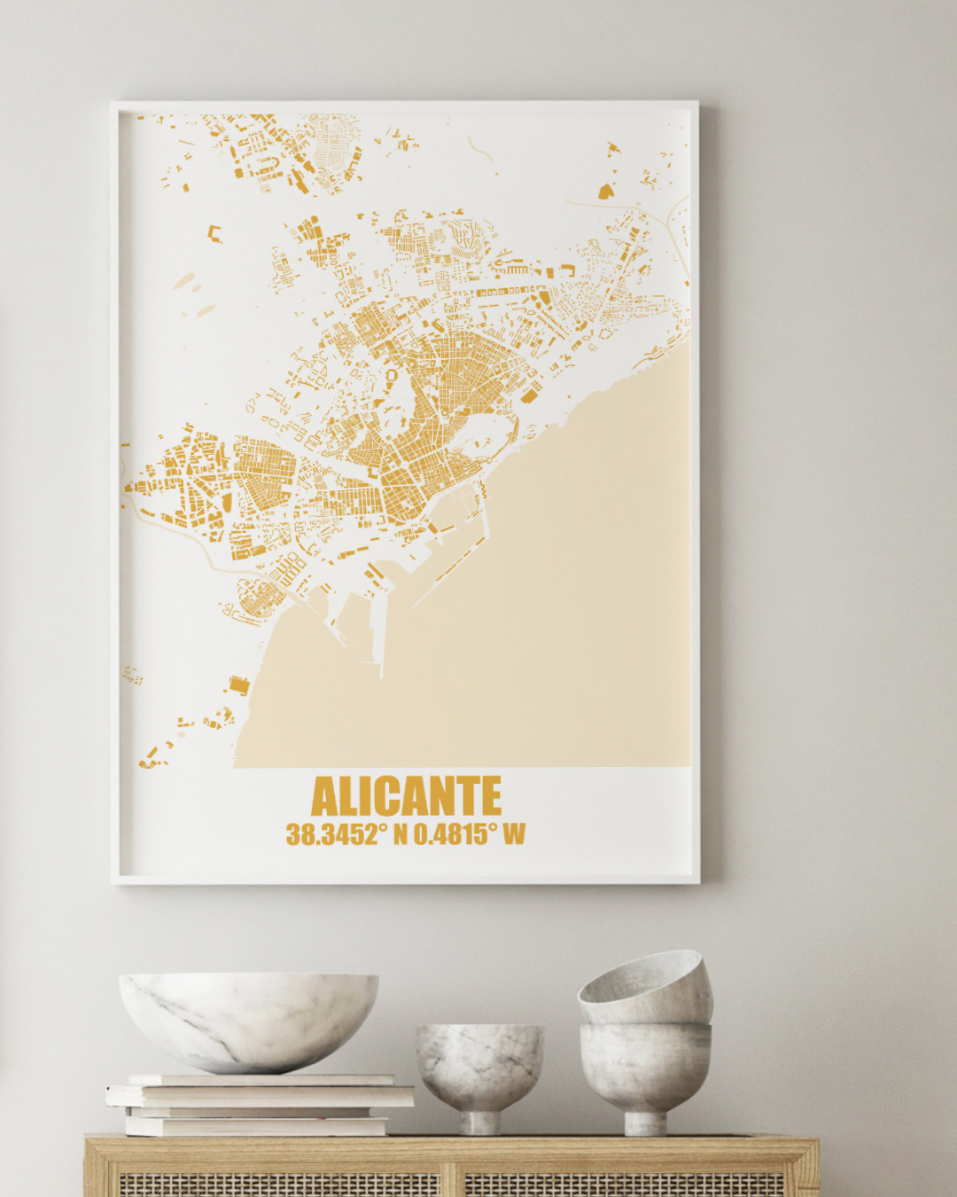 Más que un mapa, esta lámina es una invitación a recordar paseos por la Explanada, atardeceres junto al puerto o momentos vividos entre callejuelas llenas de historia. Es el regalo perfecto para quienes han visitado, vivido o sueñan con descubrir Alicante.
